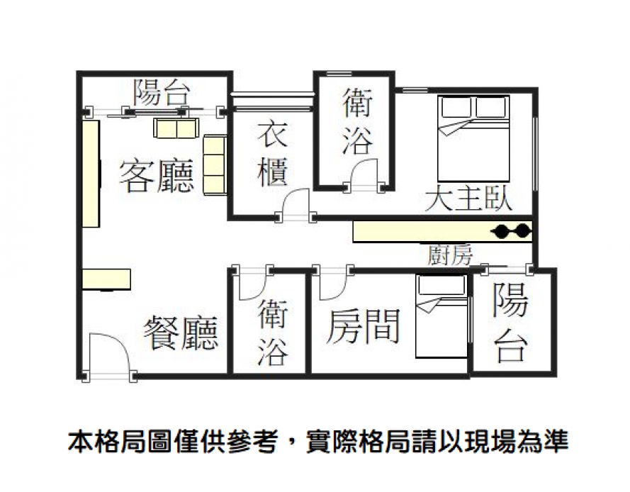 2.雙陽台採光通風佳,大主臥房(3房改2房)